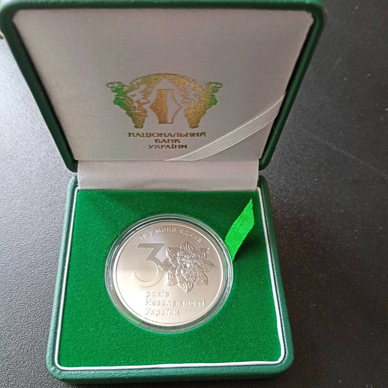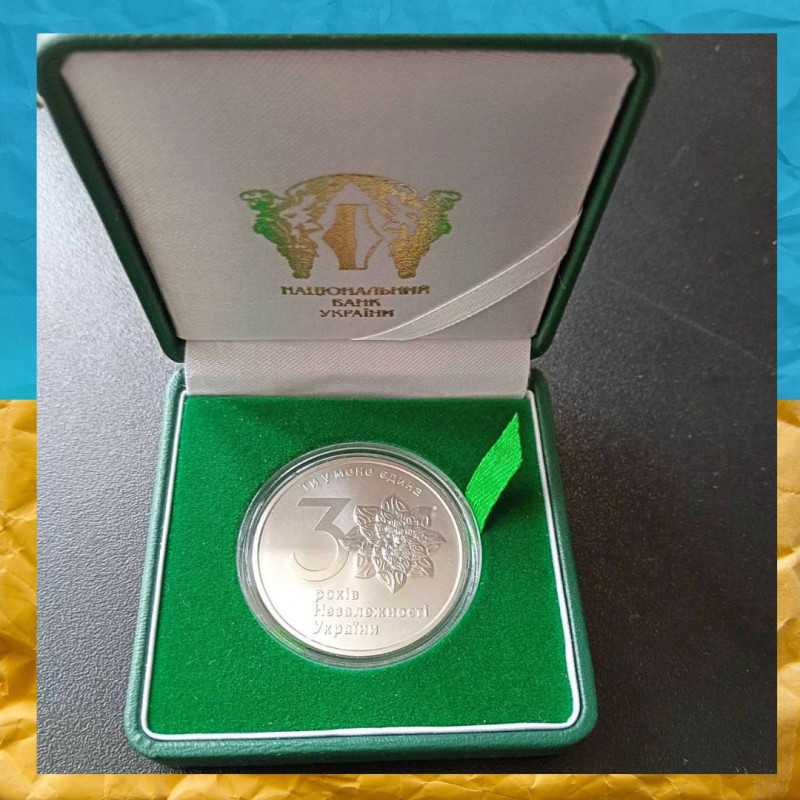 30 років незалежності України монета срібло в подарунковому футлярі