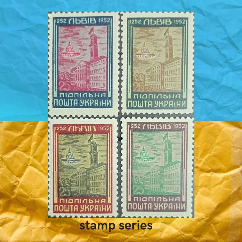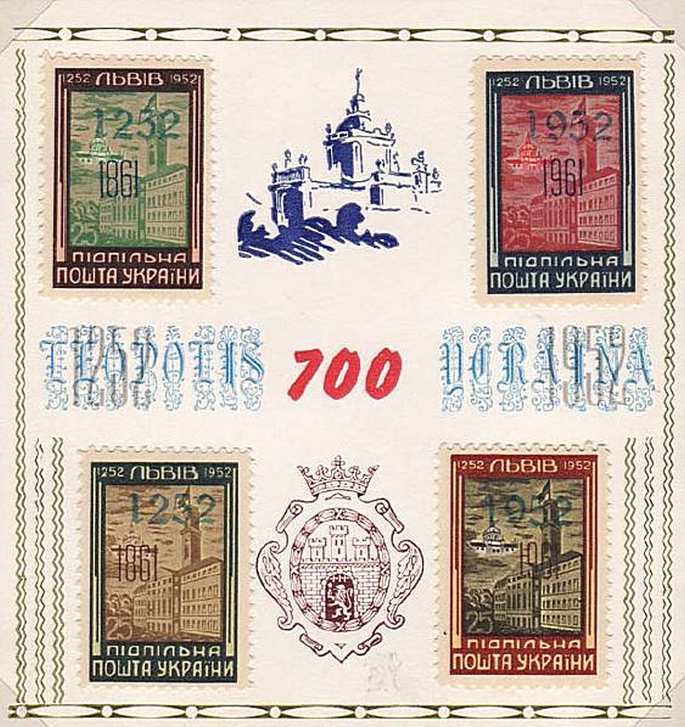 Серія поштових марок, випущена Підпільною поштою України до відзначення 700-річчя міста Львова, є унікальним витвором 1952 року. Ця серія складається з чотирьох марок, виконаних у різних кольорах, кожна з яких передає атмосферу цього історичного міста.