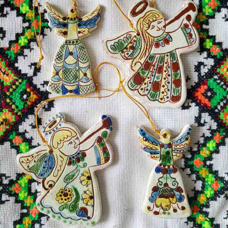 Кожна керамічна підвіска‑ангелик у косівському стилі — це ніжний оберіг, наче сплетений із сяйва світанку та тихого подиху лісових квітів. Висотою всього 8–10 см, він ніби крихітна поема, написана руками майстра на крихтці глини.