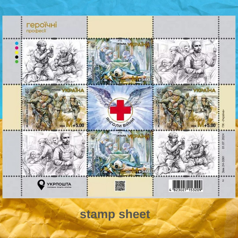 On a scorching day, July 26, 2024, when Ukraine honors its tireless medics, Ukrposhta made a noble gesture. New postage stamps titled "Medics. On the Battlefield" and "Medics. In the Operating Room" have been unveiled. United into a single sheet called "Heroic Professions. Angels of War," these stamps embody gratitude and respect. Every hryvnia from the sales will go to support hospitals bravely holding the front lines.