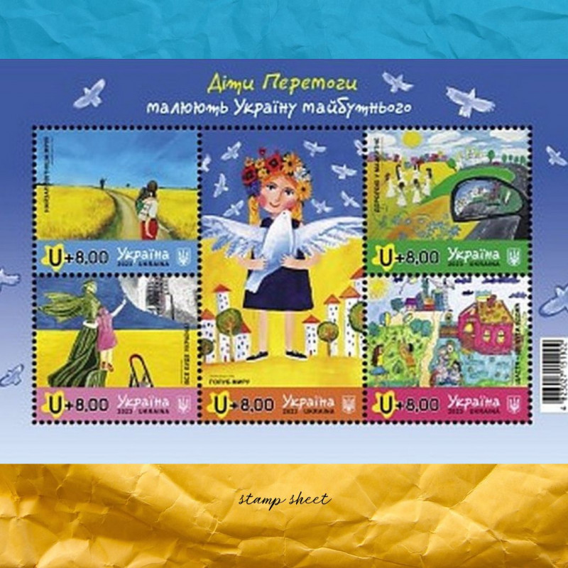 Children of Victory draw Ukraine of the future stamp sheet