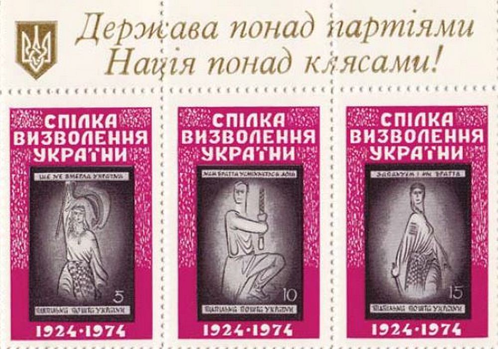 It should be noted that stamps with a similar design were printed by the Underground Post of Ukraine back in 1974. The issue was in the form of a sheet with three stamps.
