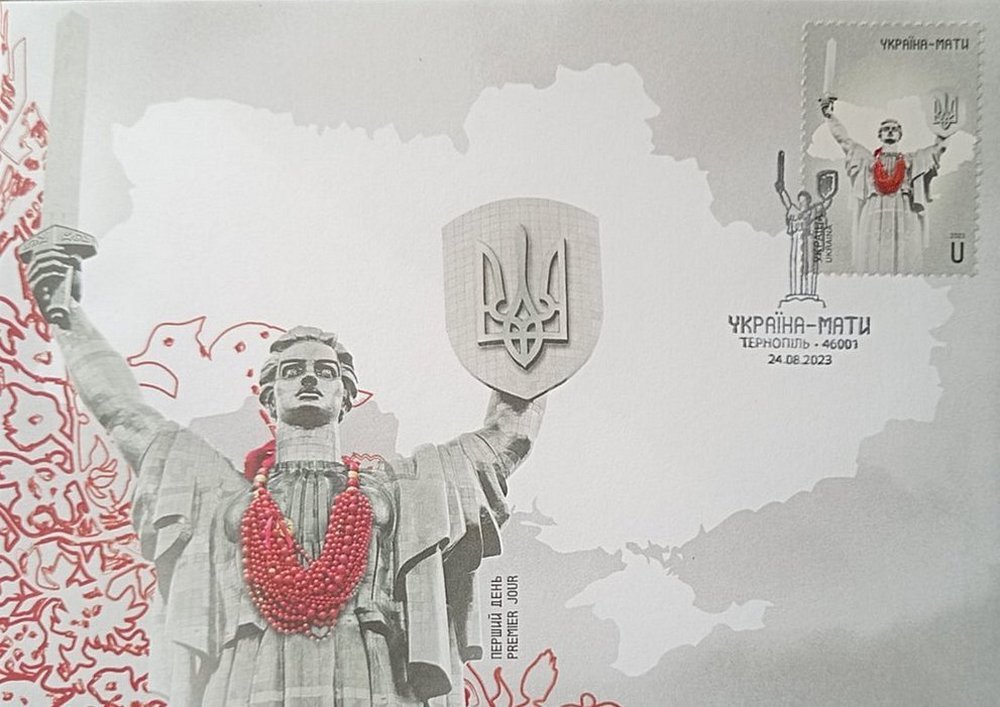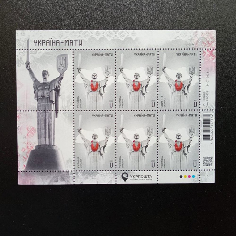 The stamp features a monumental sculpture towering over the Pechersky Hills of Kyiv. The sculpture was a symbol of the Soviet Union's struggle against fascism. Nowadays, this monument plays an equally important role and symbolizes the solidarity of the Ukrainian nation in the fight against the racists.