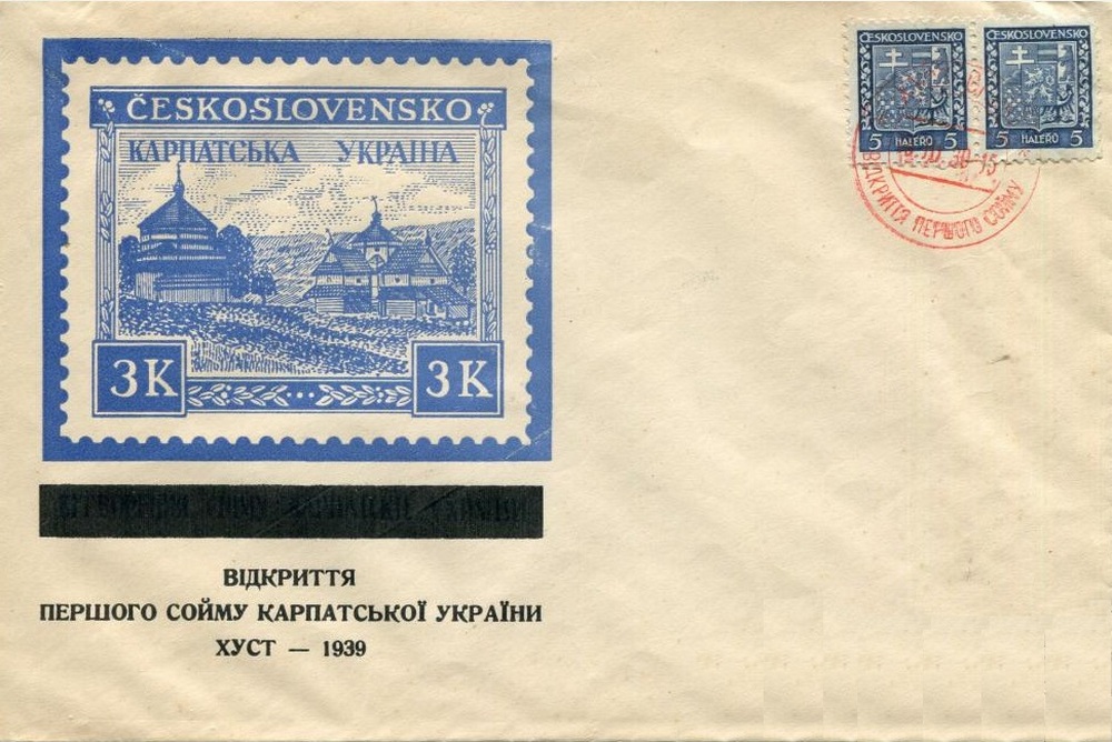 Марка Карпатська Україна була введена в обіг в Хусті у день засідання 1-го Сойму Карпатської України – 15 березня 1939 р.