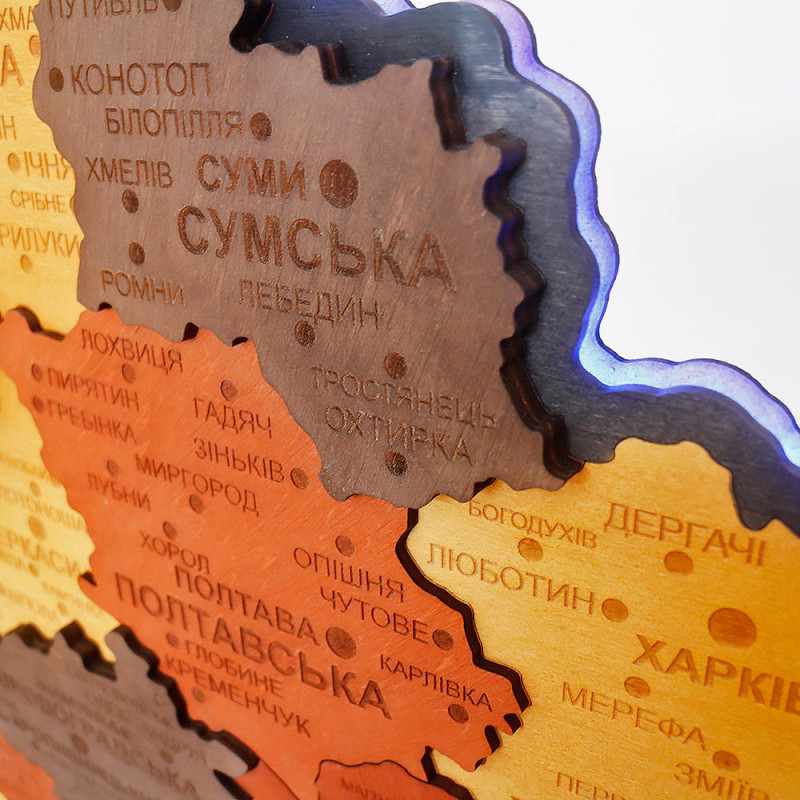 Карта України з підсвіткою – це більше, ніж просто карта. Це витвір мистецтва, що об'єднує в собі майстерність, красу та символіку. Це предмет, що нагадує про рідну землю, про її велич та красу. Це подарунок, який не залишить байдужим жодного українця. Нехай ця карта стане частиною вашого дому, символом любові до України та джерелом натхнення на кожен день.