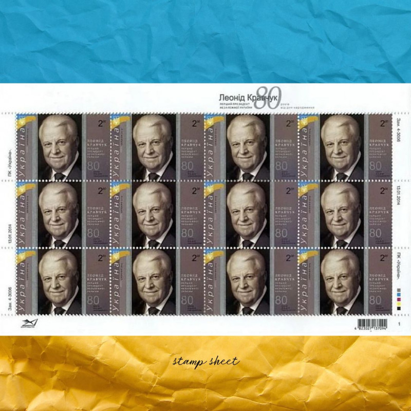 Марка, присвячена Леоніду Кравчуку, першому Президенту незалежної України, пронизана глибоким символічним змістом, який майстерно переданий у її витонченому дизайні. Ця вишукана поштова марка привертає увагу своєю елегантністю та деталізацією. Портрет Леоніда Кравчука, який відтворений на ній, є втіленням його високого статусу та вагомості як керівника країни. Кожна деталь образу його обличчя промовляє про його велику силу та багаторічний політичний досвід.