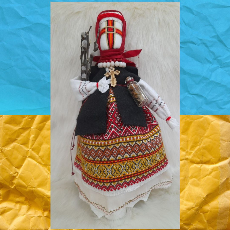 Матеріали — натуральні й символічні. Для виготовлення використано бавовну, льон, стрічки, намистини, сухоцвіти. Кожна деталь має значення: нитки — як життєві стежки, вишивка — як оберіг, хрест на обличчі — як знак гармонії світу. Трави та вербові гілочки несуть аромат традицій, захищаючи дім від зла та негараздів.