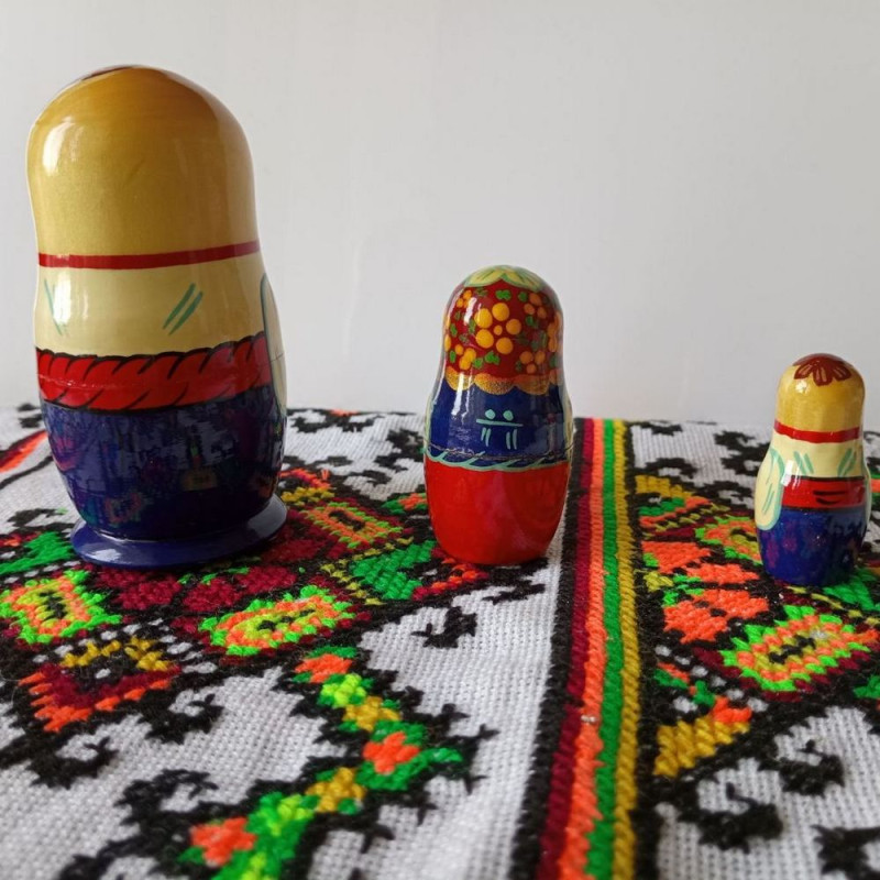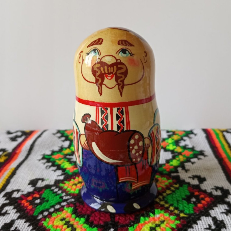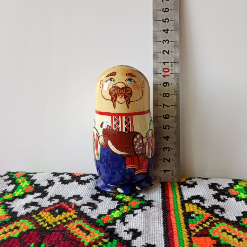Найменша фігурка в наборі – маленький хлопчик, який зворушливо виглядає поруч зі своїми батьками. Його пустотливий вигляд і усмішка дарують радість та надію на щасливе майбутнє. Він також одягнений у традиційний костюм, який гармонійно доповнює образ всієї сім'ї. Ця мотрійка підкреслює важливість родинних цінностей та передає дух єдності та спадковості.