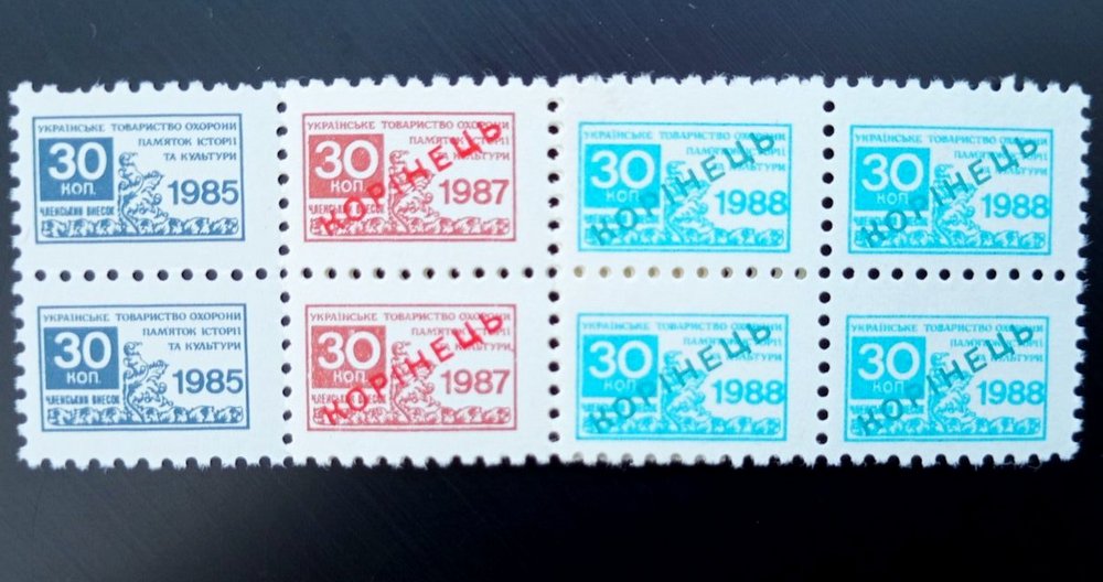 «Українського товариства охорони пам’ятників історії та культури». Марки виконувались