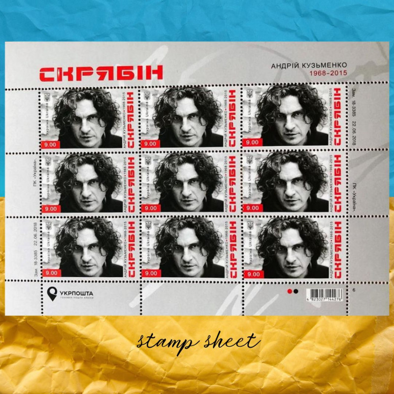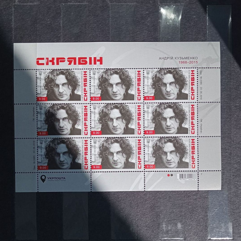 Поштова марка Скрябін присвячена видатному діячу української культури Андрію Кузьменку. Марка випущена до 50 річчя від дня народження. Кузьма народився у 1968 році і трагічно загинув у 2015 році.