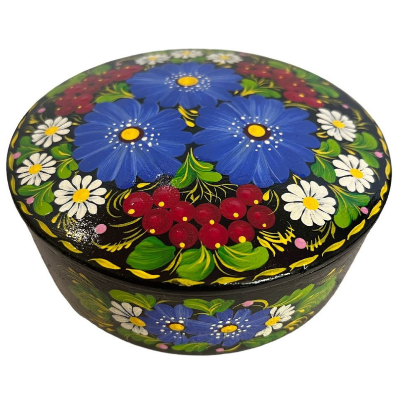 Скринька «Квітчаста» кругла — витвір мистецтва з українською душею