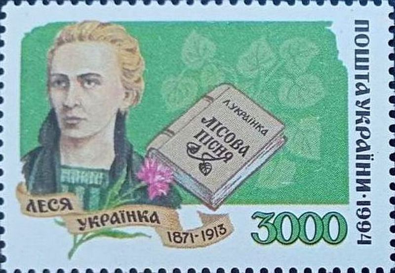належність марки до української пошти та рік випуску. До цього Леся Українка