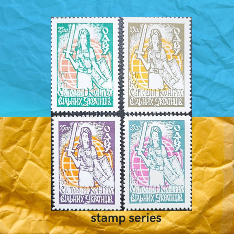 У 1967 році, на хвилі єднання української діаспори та вшанування 50-ліття боротьби за незалежність України, побачила світ унікальна серія поштових марок, видана українською громадою в Чикаго за сприяння Світового Конгресу Вільних Українців (СКВУ). Ця серія стала символом патріотизму, національної ідентичності та непохитної віри в майбутнє України.