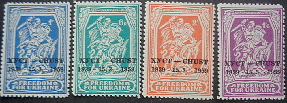 Марки "Боротьба України з Москвою" з наддруком на честь 20 річча створення Карпатської України.