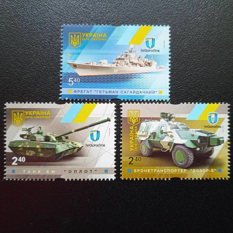 | Дата випуску | марка фрегат "Гетьман Сагайдачний" - 02.07.2016 марка танк БМ "Оплот" - 25.03.2016 марка бронетранспортер "Дозор Б" -25.03.2016 марка "АН - 178" - 11.08.2017 марка бронетранспортер "БТР4" - 11.08.2017 марка система -21УМ "Берест" -9.10.2020 марка бронетранспортер БТР-4МБ1 -9.10.2020 |