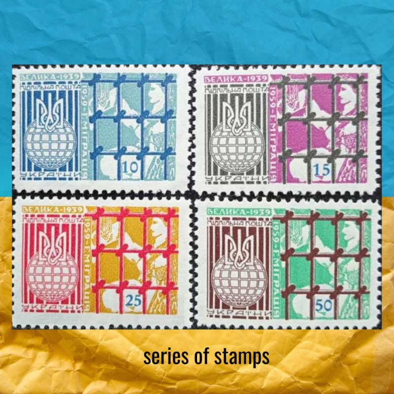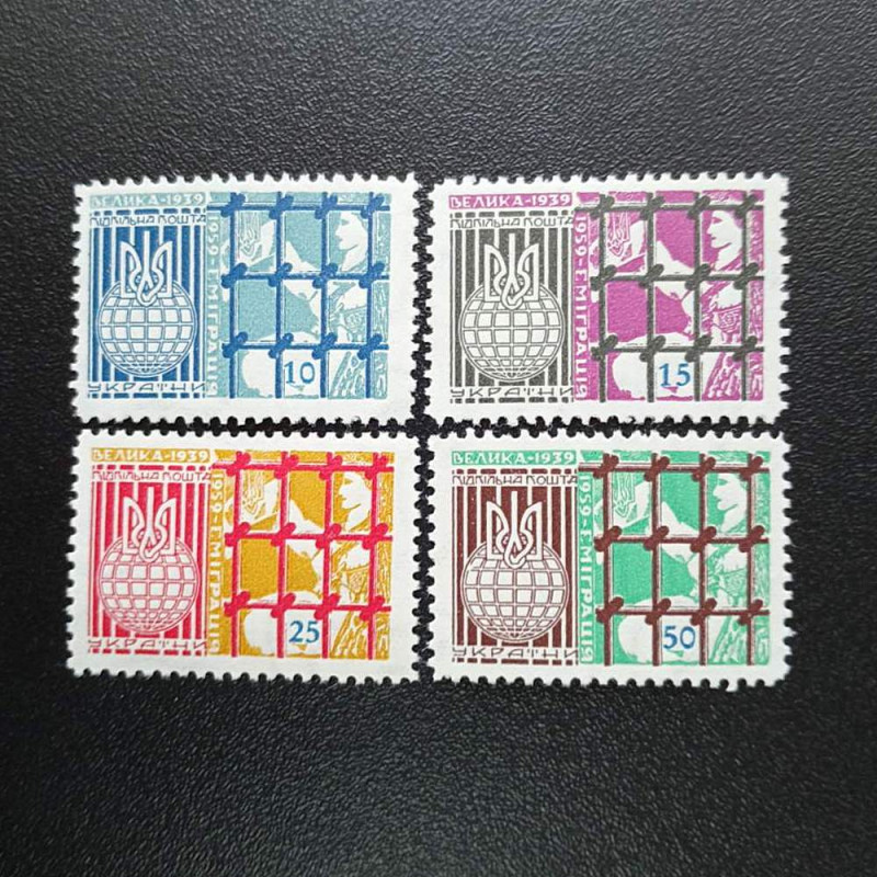 Пам'ятна серія марок 1959 року, присвячена Великій еміграції 1939-1959 рр., стала важливим символом в історії української поштової філателії. Серія містить 10 різних номіналів: 5, 10, 15, 20, 25, 30, 45, 50, 60, та 70 шаг.