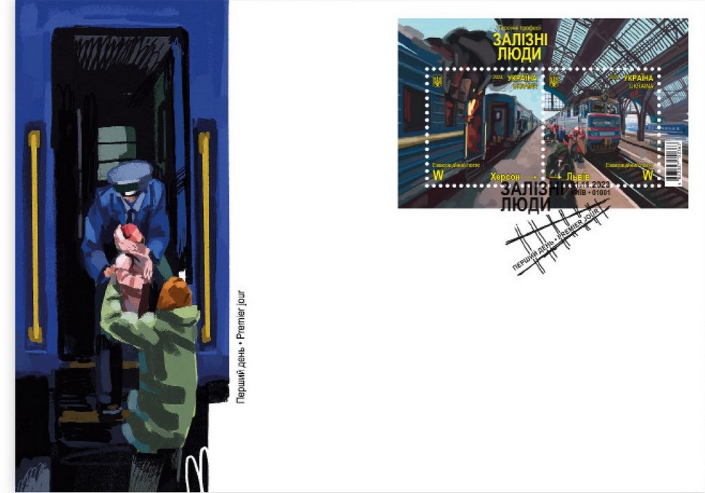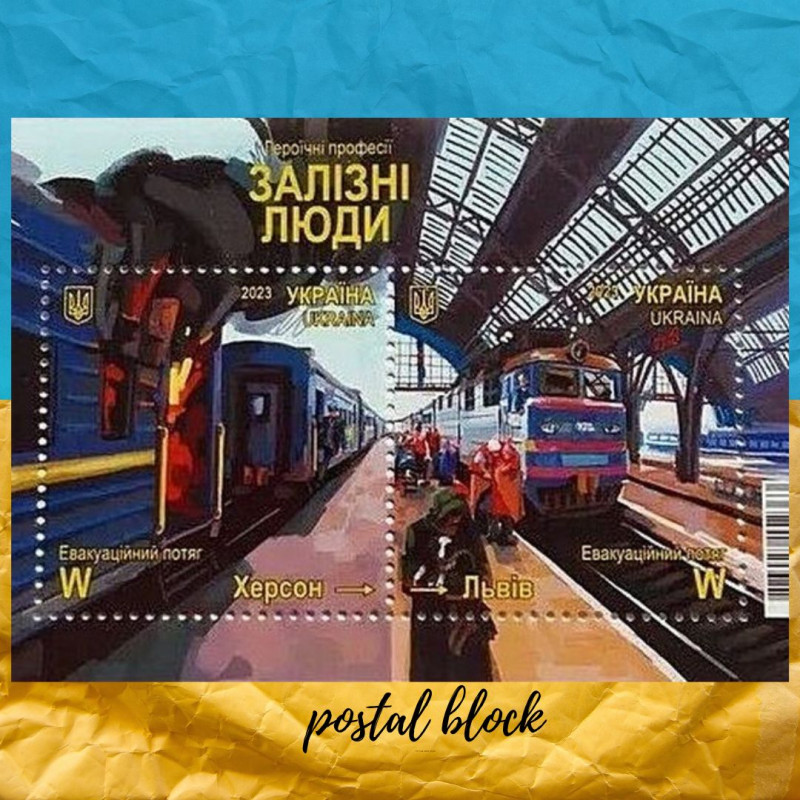 Поштовий блок присвячений працівникам української залізниці, які своєю героїчною працею показали приклад усій країні.